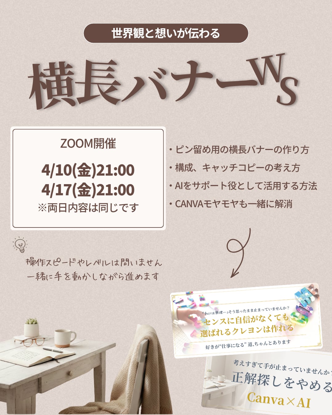 当日は、実際に 横長バナーを作りながら 進めていきます。